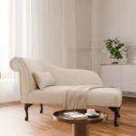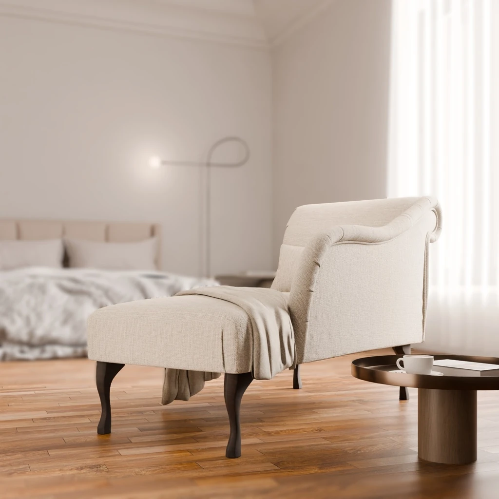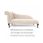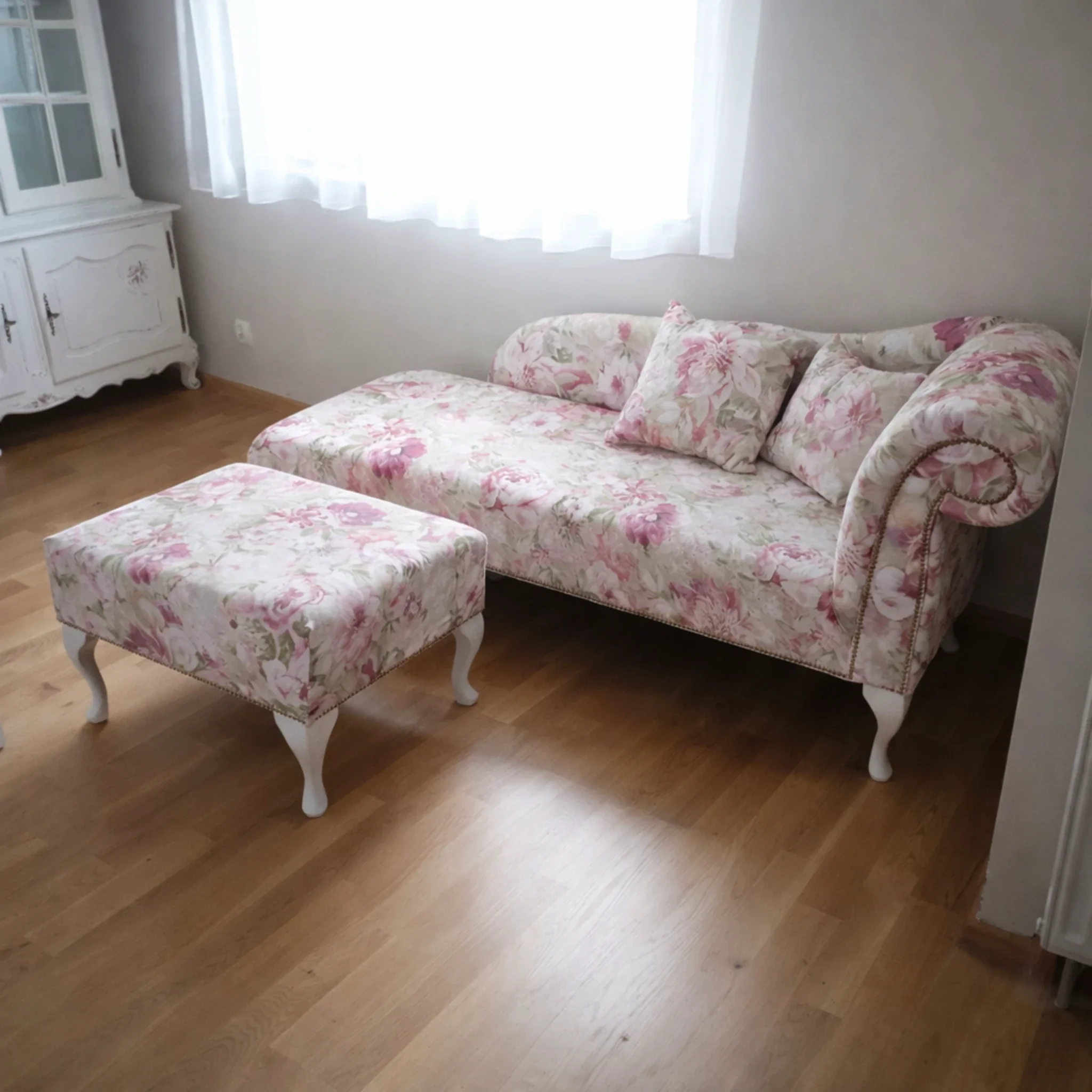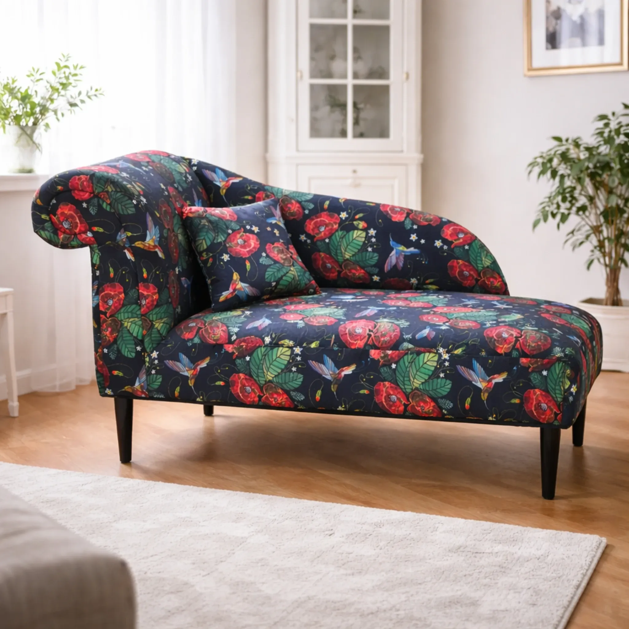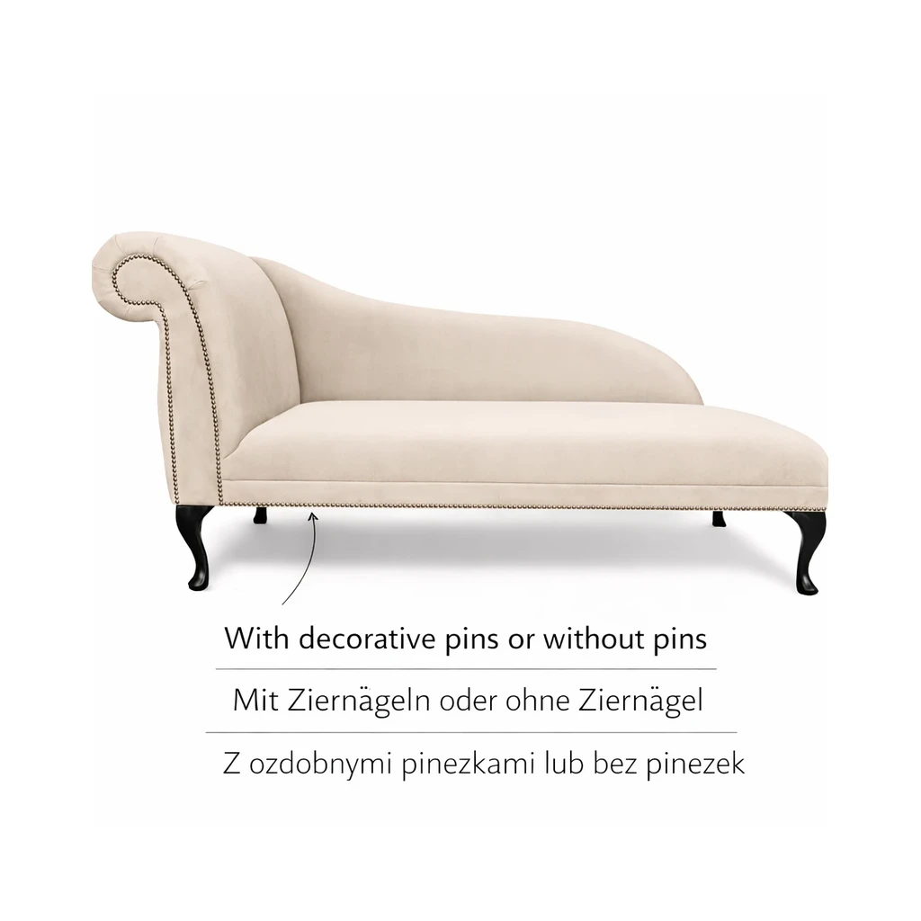 The classic chaise lounge is handmade to measure, with the possibility to choose the upholstery fabric and finishing details. A decorative cushion is included with every order.