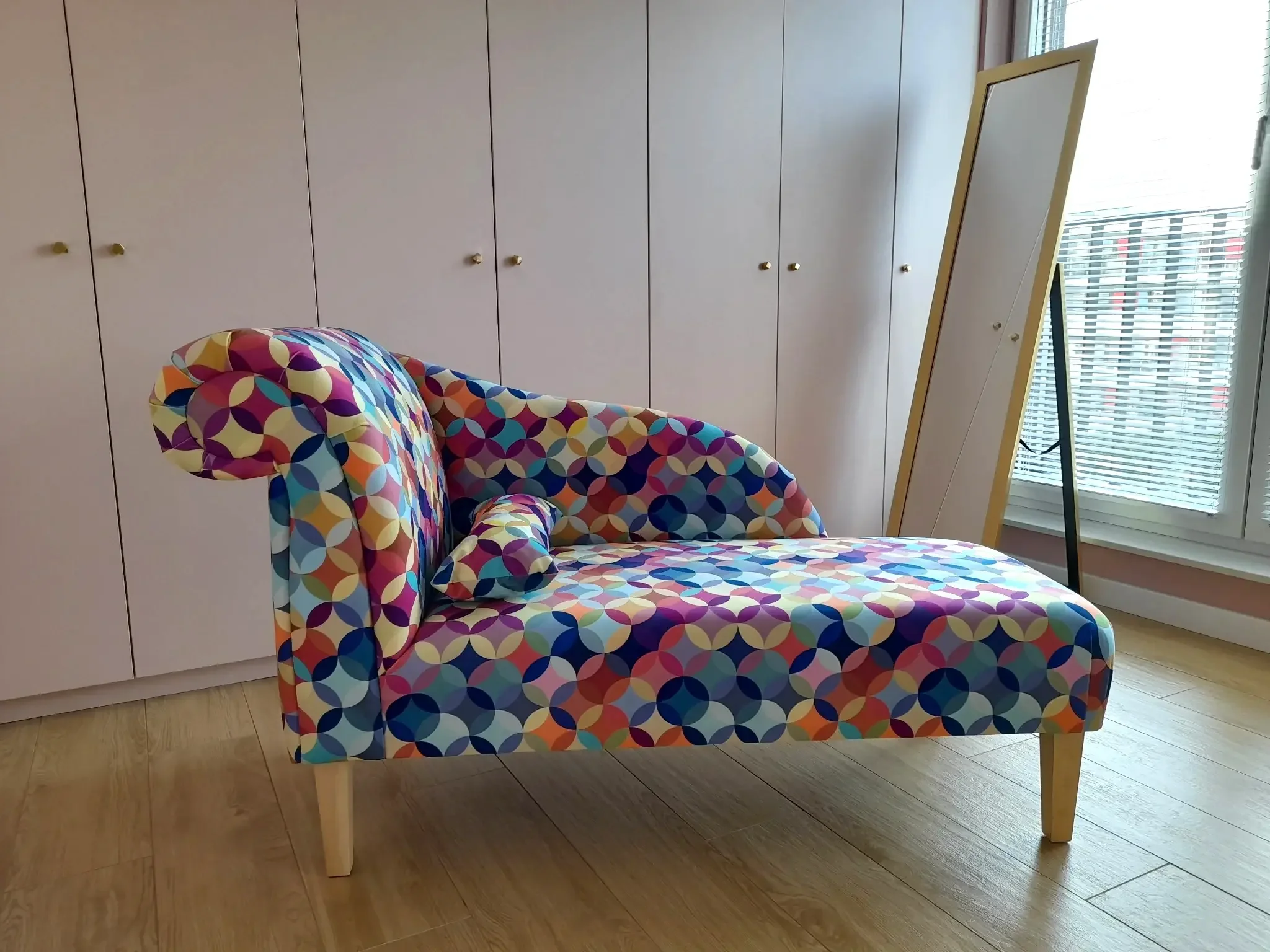 The chaise lounge is handmade to order, with the possibility to customise the upholstery fabric, dimensions and finishing details.
